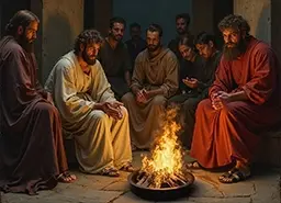 54 And Peter followed him afar off, even into the palace of the high priest: and he sat with the servants, and warmed himself at the fire.